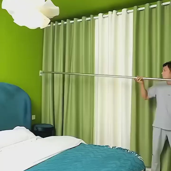 But that’s not all—it doubles up as a curtain rod, giving your windows a clean and modern look. You can also install it in the bathroom to hang towels, clothes, or even shower curtains.